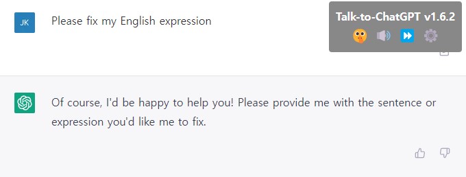 영어로 말씀하시기 전에 내 영어 표현을 고쳐달라고 하면, 고쳐준다고 하고 시작하시면 됩니다. 시작하실 때, 원하는 표현들의 예제를 알려달라고 해도 되고, 더 좋은 표현을 알려달라고 말씀하셔도 됩니다. 대화해 달라고 말씀하셔도 되고, 주제는 무궁무진합니다. 대화를 하실 때, 영어로 말씀하시기 어려우시면, 한국어로 말씀하셔도 알아듣기 때문에, 언어를 달리하시도 대답은 영어로 해달라고 요청하시면 됩니다.